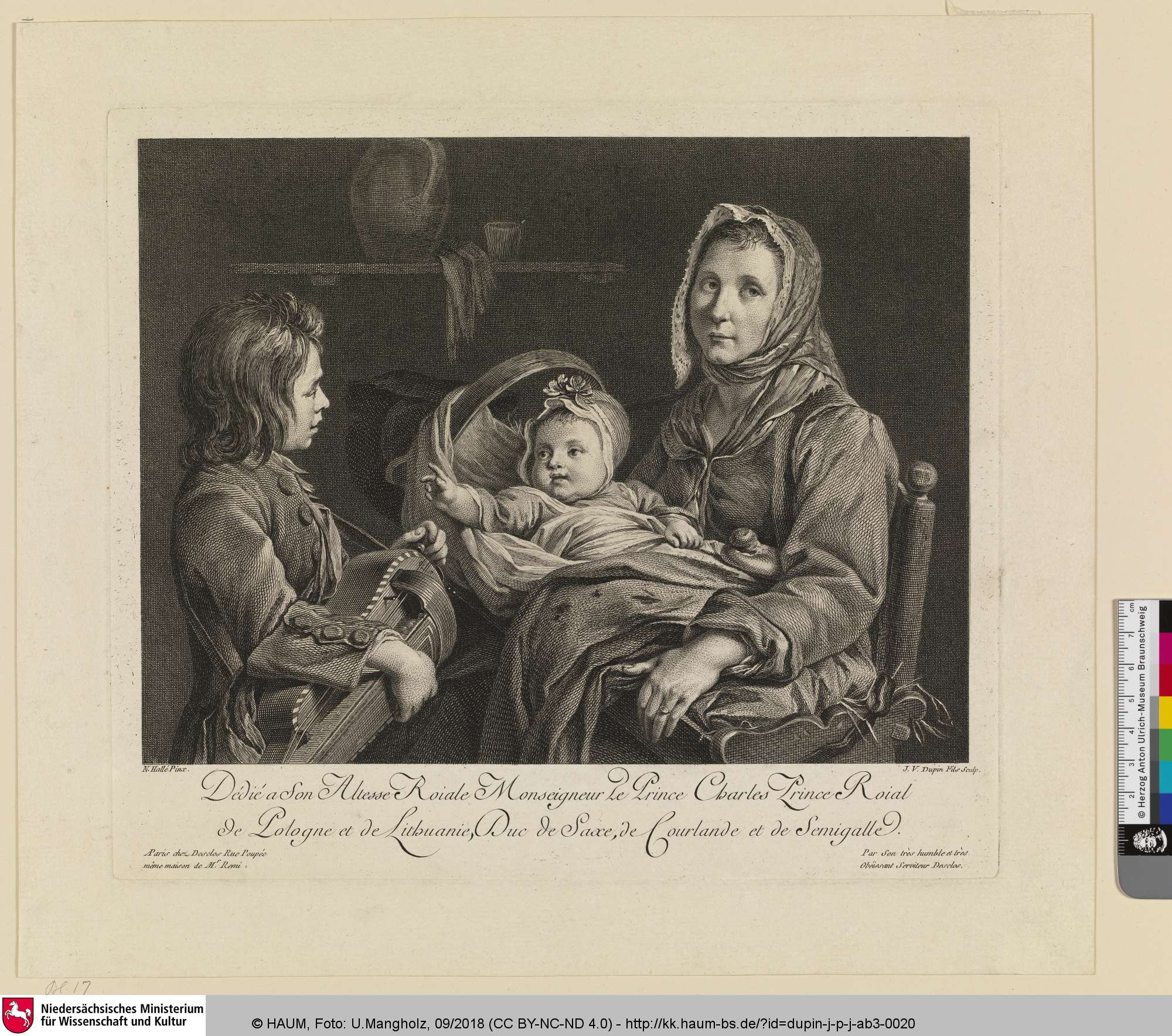 [Die Savoyerin und ihre zwei Kinder, von denen eines die Fidel spielt; La Savoyarde et ses deux enfants, dont un joue de la vielle]